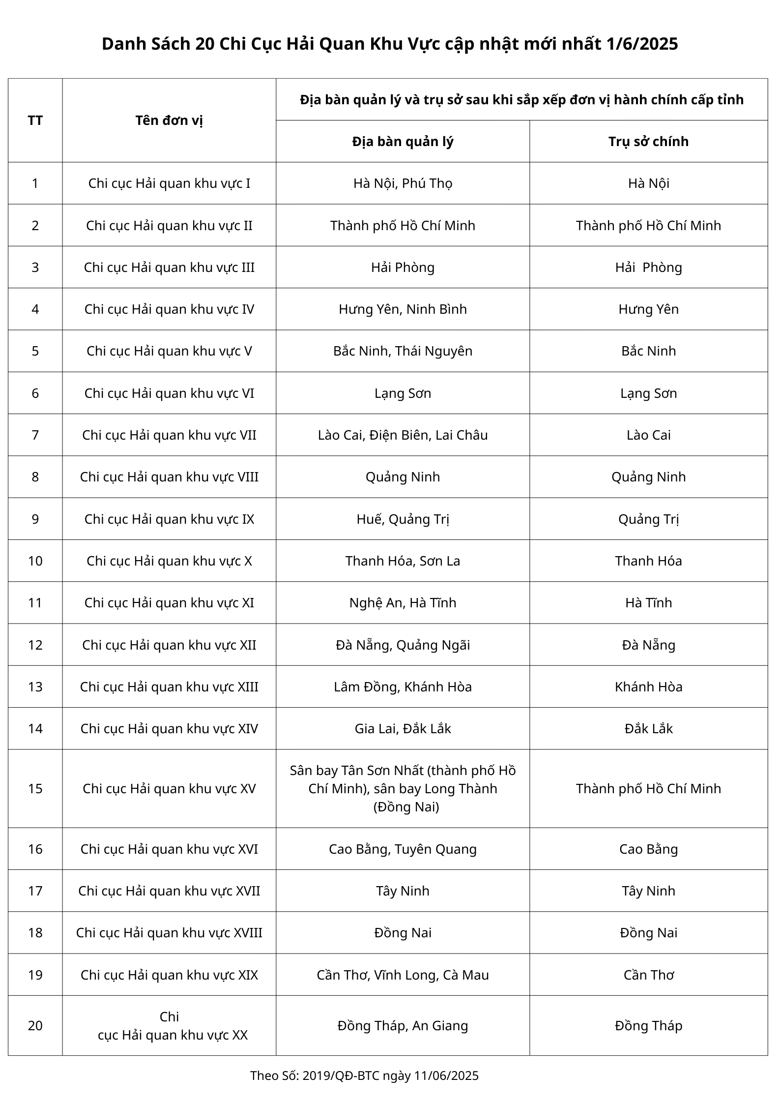 Trong bài viết này, UB cập nhật chi tiết danh sách 20 Chi cục Hải quan khu vực theo Quyết định 2019/QĐ-BTC (11/6/2025), sau sắp xếp đơn vị hành chính cấp tỉnh – giúp ứng viên thi tuyển đối chiếu với Tờ trình 35766/BTC-TCHQ (về phương án sắp xếp bộ máy) để cân nhắc địa bàn dự thi phù hợp với hộ khẩu và ưu tiên địa phương.