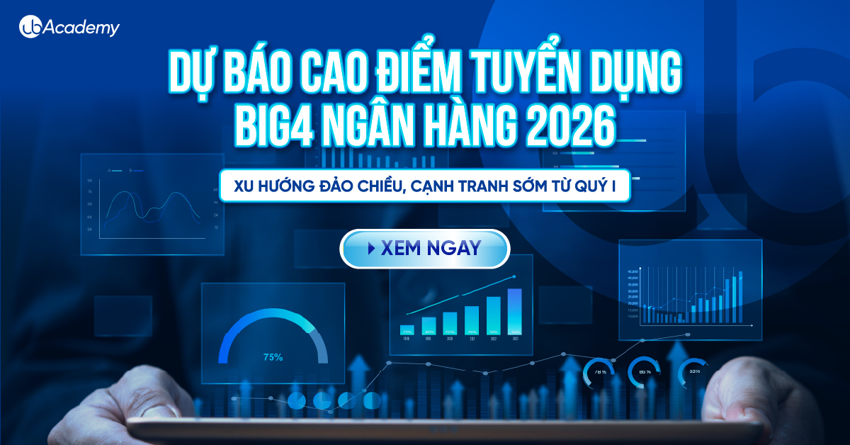 a) Với khối Ngân hàng Big4 (Vietcombank, BIDV, Agribank): Bạn không cần đắn đo chọn ngân hàng nào để thi, vì UB Academy mang đến cơ hội linh hoạt và tiết kiệm tối đa.