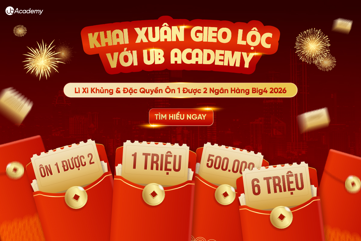 Các ngân hàng Big4 dự kiến mở đợt tuyển từ tháng 3-4, với đề thi ngày càng phân hóa và cạnh tranh cao. Ôn thi muộn có thể khiến ứng viên bỏ lỡ "độ tuổi vàng" (như BIDV giới hạn dưới 27 tuổi) hoặc không kịp thích nghi với cấu trúc đề mới. Vì vậy, UB Academy khuyến nghị khởi động sớm để nắm vững kiến thức trong trạng thái thoải mái, chủ động, tránh áp lực cuối cùng. Chính vì vậy, chương trình ưu đãi Tết "KHAI XUÂN GIEO LỘC - CHẠM ĐÍCH THÀNH CÔNG" của UB Academy chính là bước khởi đầu lý tưởng để học viên chủ động đầu tư vào bản thân, biến cơ hội tích cực thành thành công rực rỡ trong năm mới.