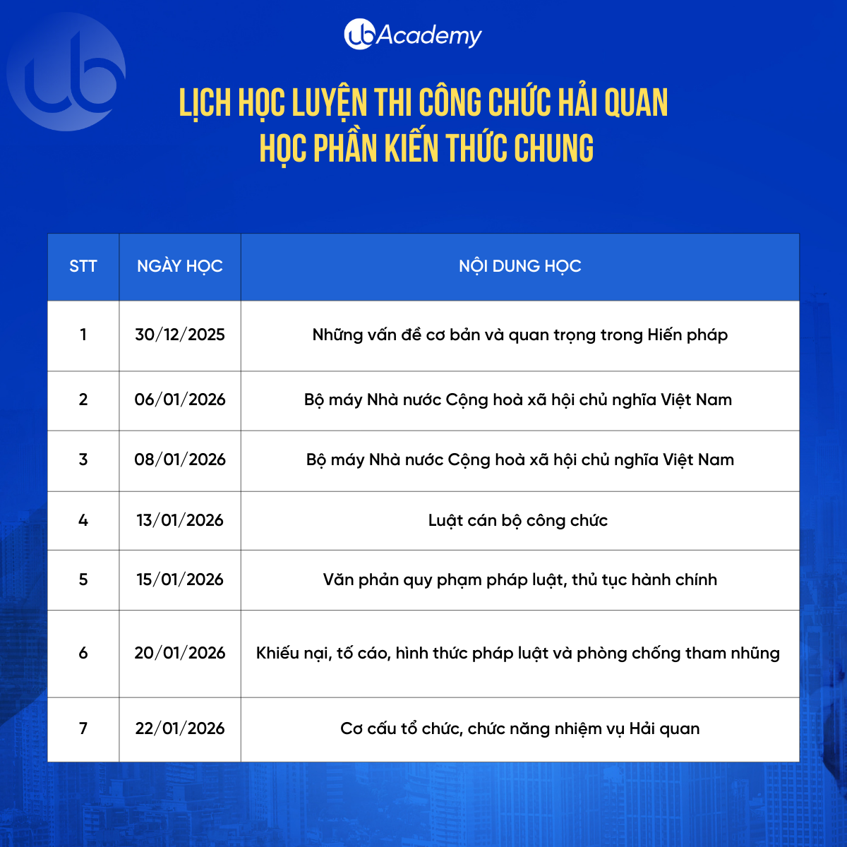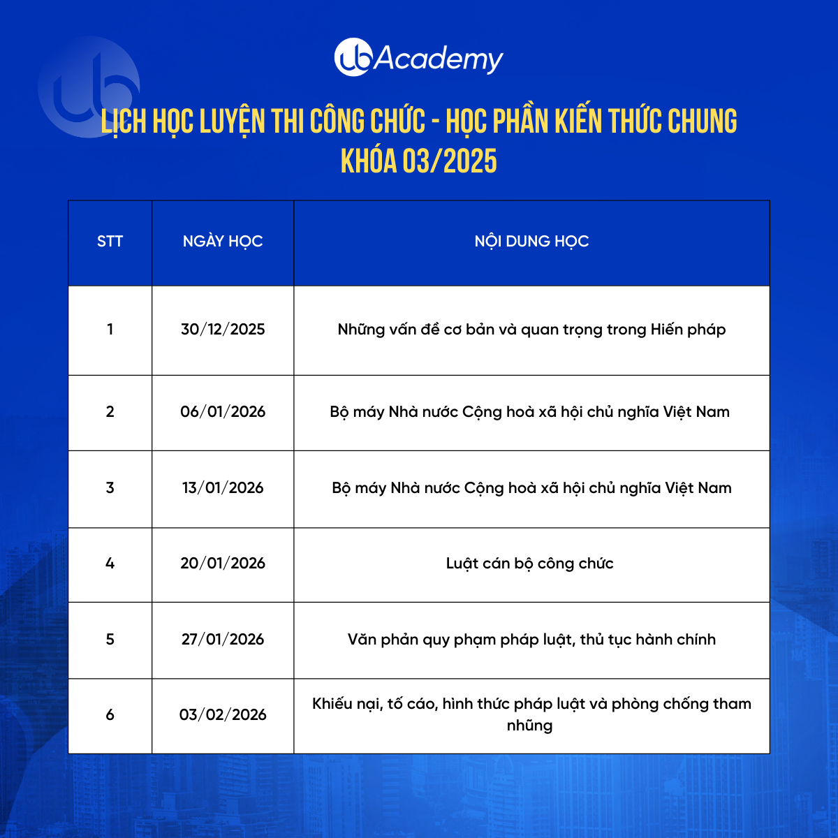 Lịch khai giảng Khóa học Kiến thức chung - K1.2025