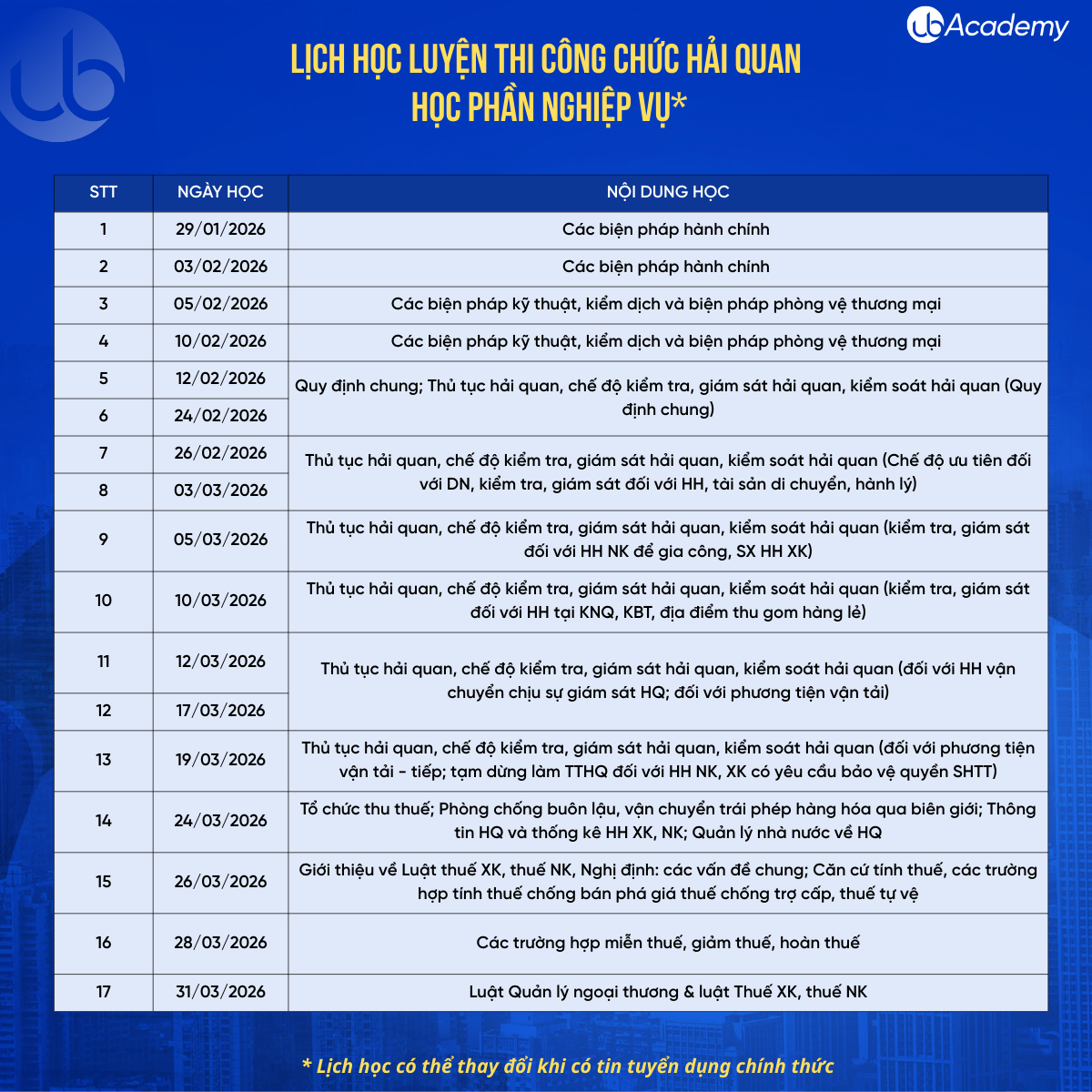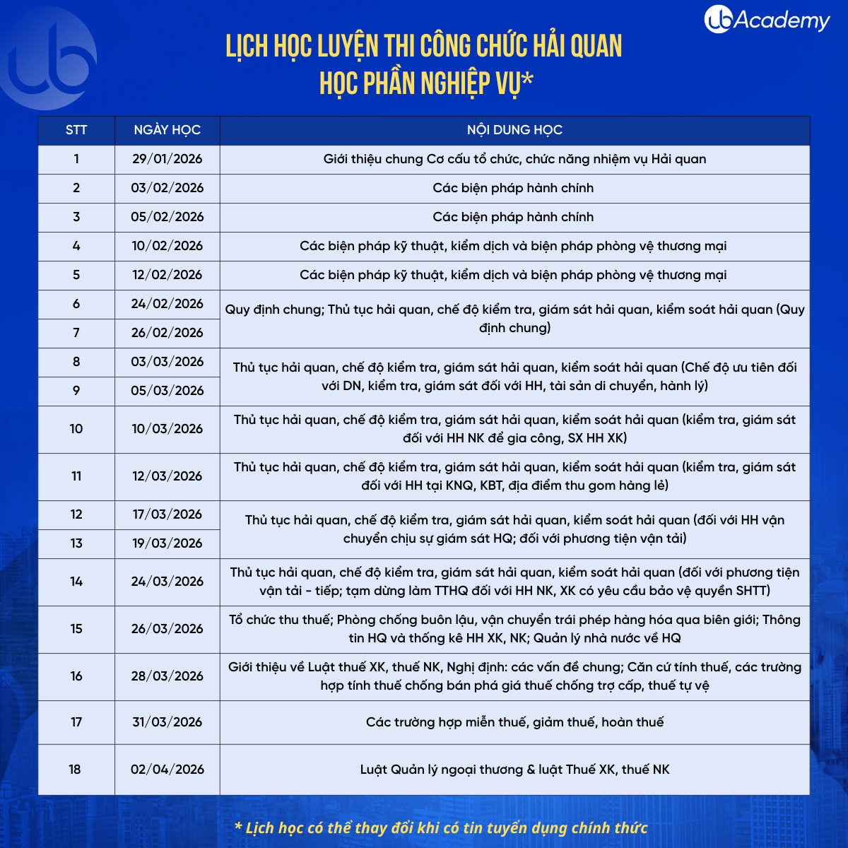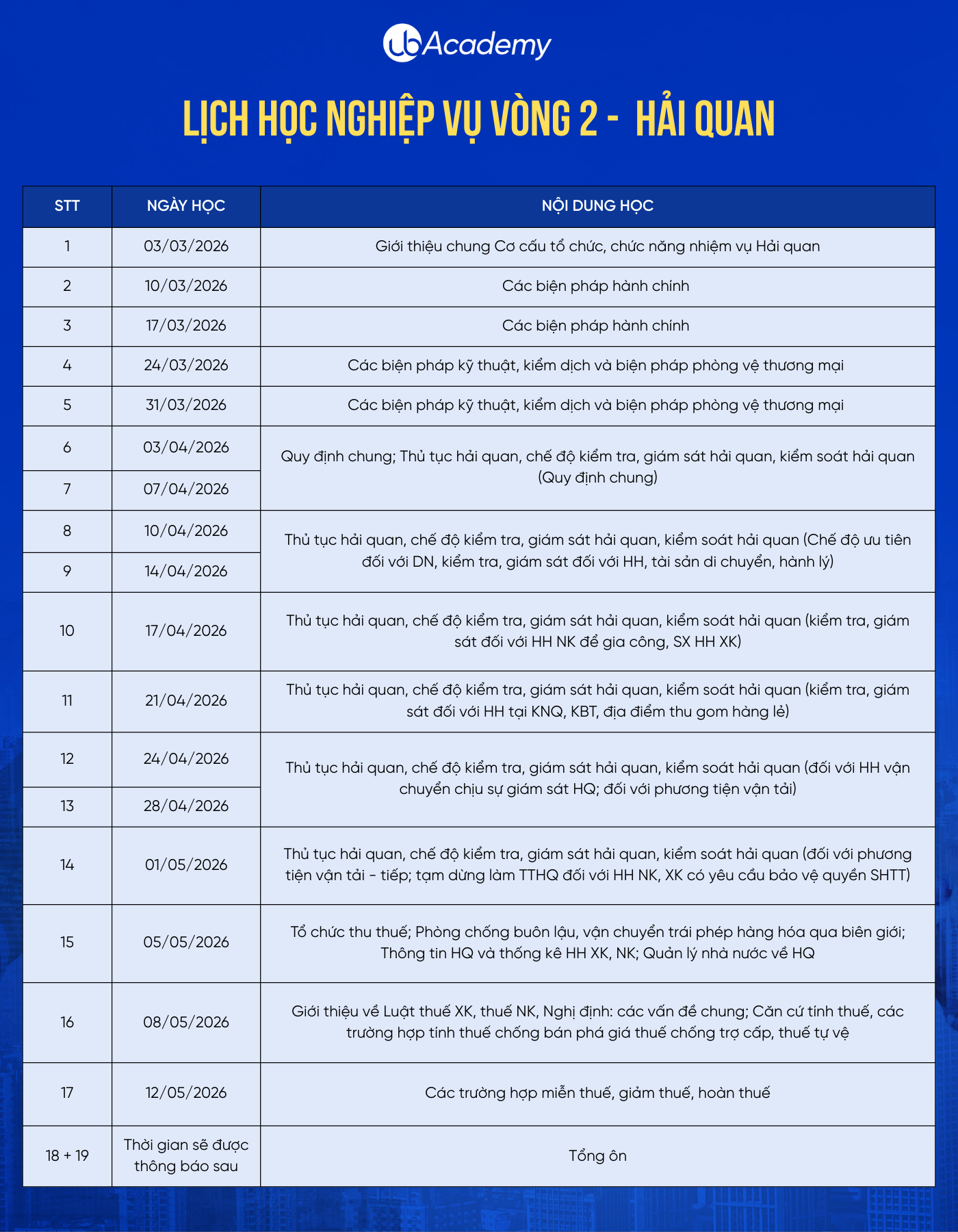Lịch khai giảng Khóa học Nghiệp vụ - Hải Quan