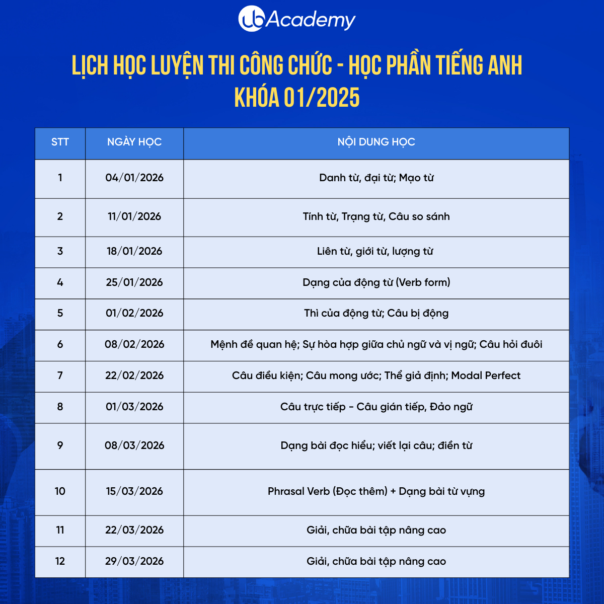 Lịch khai giảng Khóa học Tiếng anh - K01.2025