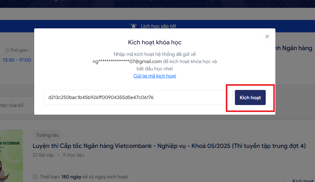3.4 Nhập mã kích hoạt khóa học